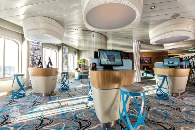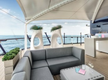 • Značkové nápoje na palube (nealkoholické nápoje, pivo, sekt, víno, koktaily, long drinky, liehoviny, kávové špeciality) počas celého dňa v reštauráciách, baroch a salónoch