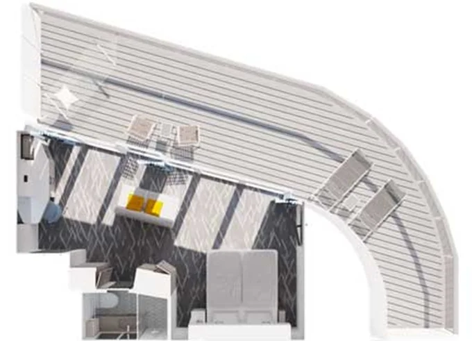 | VEPO - Kajuta s terasou Premium 30 m² + balkón 35 m² so stoličkami, ležadlami a hojdacou sieťou. 15. paluba. Max 2 osoby. | 7 098 € 3 549 € za osobu |