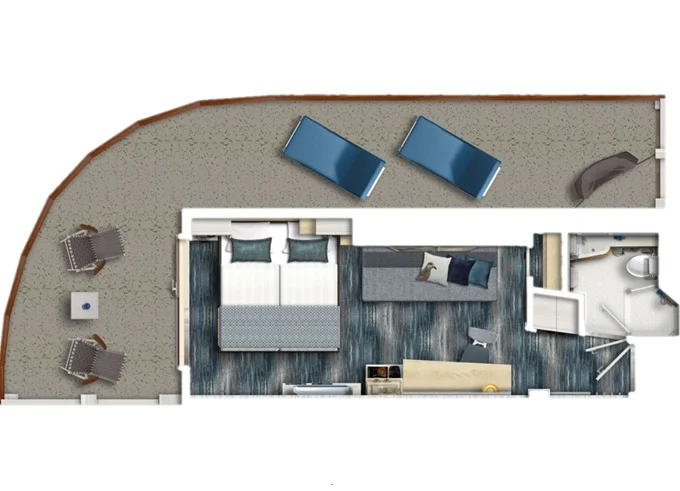 | SUSO - Übersee Suite 40 m² + balkón 9 m² s ležadlami a hojdacou sieťou. 14. paluba. Max 4 osoby. Výhody Suite. | 8 798 € 4 399 € za osobu | ||