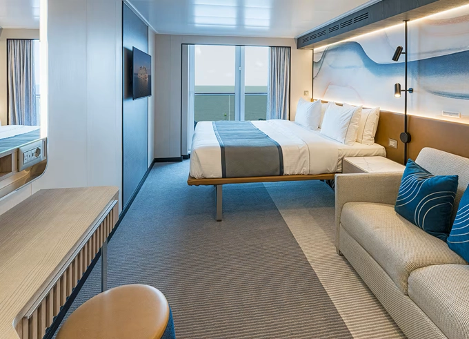 | MB - Club Suite Forward-Facing s balkónom 22 - 25 m² / balkón 7 m². 9. až 13. paluba - vpredu. Max 2 osoby. Výhody Club. | 5 114 € 2 557 € za osobu | ||